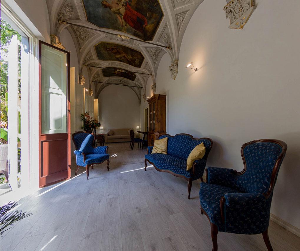 La residenza Palazzo Riblet tra l'altro ha una delle suites più stupefacenti della città, una stanza meravigliosamente affrescata e arredata con terrazza che affaccia su un bananeto nascosto fra i giardini interni del centro di Firenze.